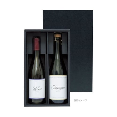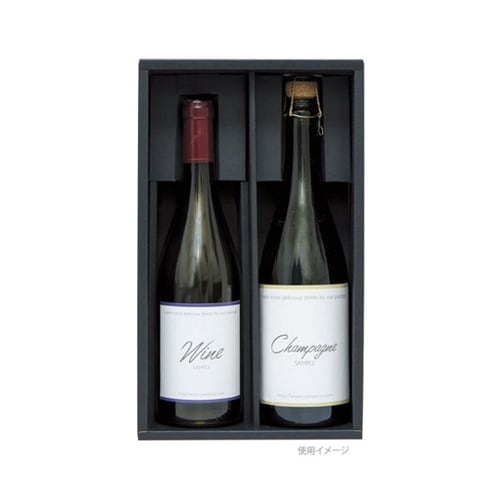 スパークリングワインからレギュラーワインまで対応の2本用カブセ箱。サイズ調整パット付。黒いシートの高級感と利便性が人気です。 |