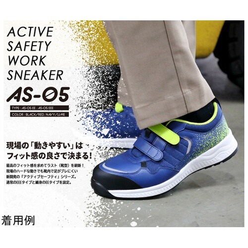 JSAA A種認定 アクティブセフティ ワークスニーカー AS−05(ワイズEEE) ネイビー/ライム 24.5cm