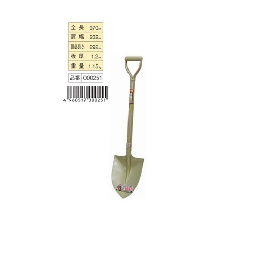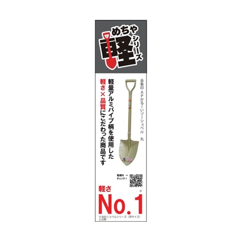 柄部にアルミパイプ柄を採用。柄部にアルミパイプ柄を採用。金象印ショベル丸形シリーズ(フルサイズ)の中で最軽量の1.15kg。頭部(すくい部)はショベル鋼板S50C相当を使用し、焼入れ(強度が上がる、磨 |