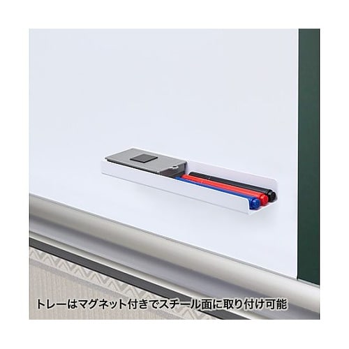 マーカーペン(赤・青・黒)、イレーサー、トレイ付表面はホワイトボード用マーカーペンで書き消しできるマットホワイトボードフィルム素材マグネット式でスチール面に簡単に貼り付けできるプロジェクター投影用スク |
