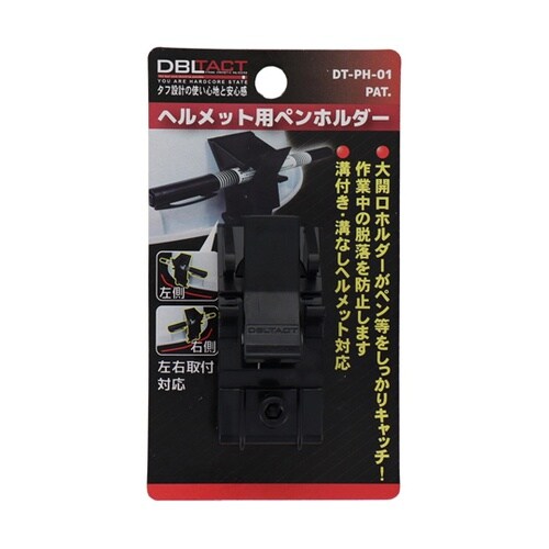 大開口のホルダーがペン等をしっかりキャッチし、作業中の脱落を防ぎます。溝付き・溝無しヘルメットに対応します。左右取り付け対応。【用途】作業中のペンの落下を防ぎたい時に。 |