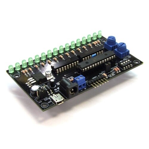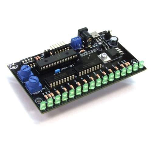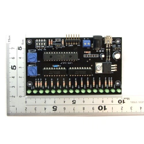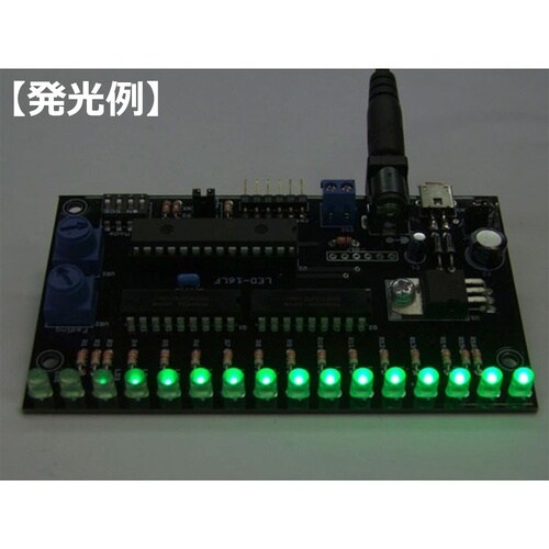 16種のパターンを搭載したLEDフラッシャー基板マイコンを使用したデジタル制御のLEDフラッシャーです。一列に並んだ16個の高輝度タイプのLED(発光ダイオード)が、様々なモードで点灯します。LED消