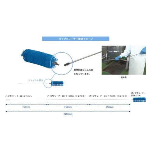 パイプクリーナーロッドとの組み合わせにより手の届かない配管や筒状の器材の奥までも洗浄が可能です。