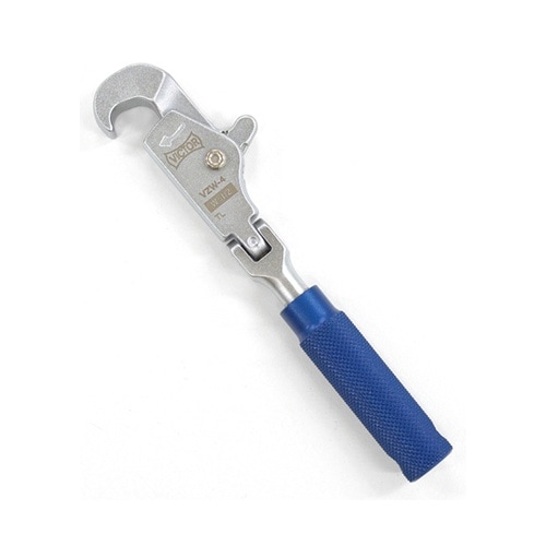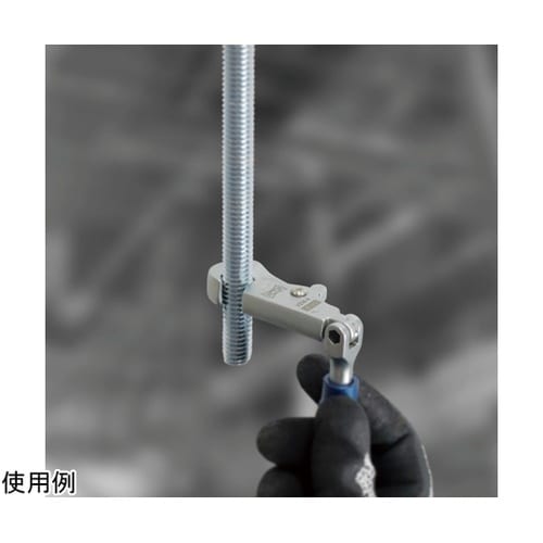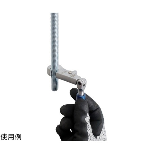 フックタイプで、4分(W1/2)の全ねじを任意の位置から締め込み始めることができます。ハンドルを曲げることで、狭い場所でも使用できます。ラチェットのように早回しが可能です。落下防止コードの取り付けが可 |