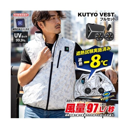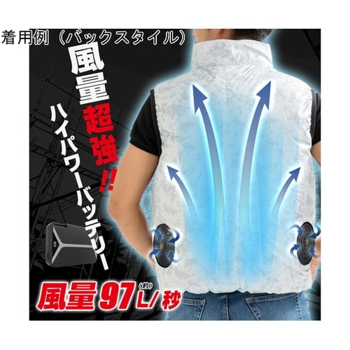 【22V胸スイッチ付き】 空調ベスト(R)バッテリーフルセット シルバープリント柄/M−Lサイズ