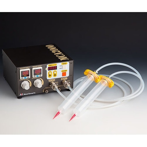 耐薬品性に優れたシリンジバレル内にある液剤をエアー加圧制御方式で定量塗布を行うディスペンサーです。各種接着剤やUV・エポキシ樹脂などあらゆる液剤の様々な作業で定量塗布を実現します。 |