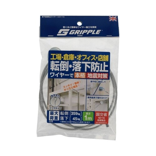 フック付きワイヤーとロッカブルプラスがセットされた落下・転倒防止ワイヤーキット。先端がフックタイプのワイヤーで、柱や金具への取付け・取り外しが簡単です。国交省NETIS登録製品です。(登録番号:KK−
