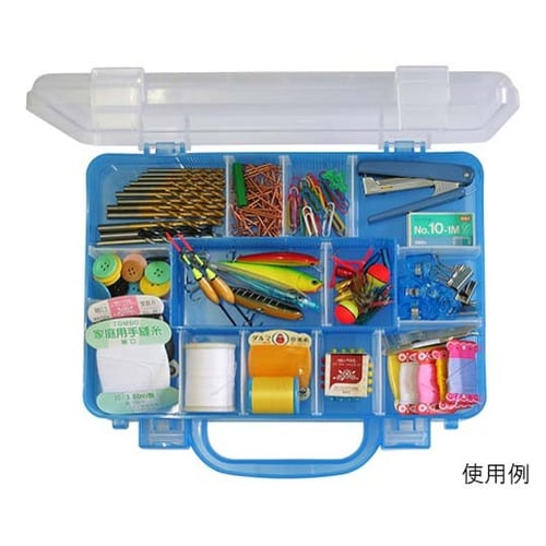 ケース両面に収納可能。レジャー、ホビー、工具の部品収納に便利。蓋はナチュラルカラーで、中身の確認ができます。仕切板枚数:24枚 |