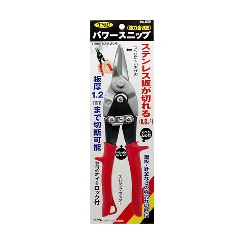 ステンレス板、鋼板、針金等を強力に切断出来ます。厚み0.8mmのステンレス板、厚み1.2mmの鋼板を切断出来ます。本体内蔵のスプリングと独自の構造により少ない力で強力に切断出来ます。刃先に細かいギザを |