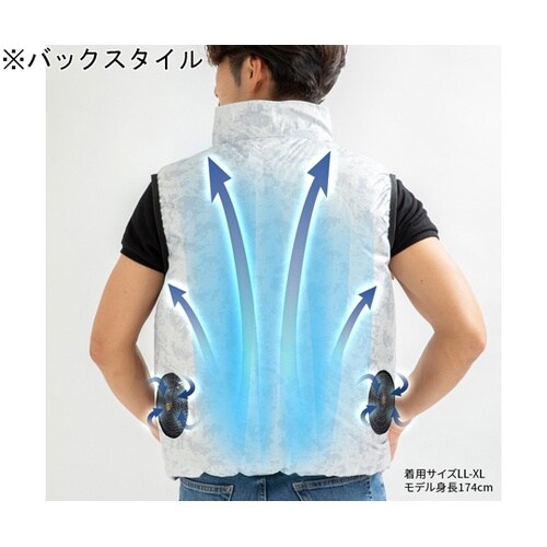 【22V胸スイッチ付き】 空調ベスト(R)バッテリーフルセット シルバープリント柄/LL−XLサイズ