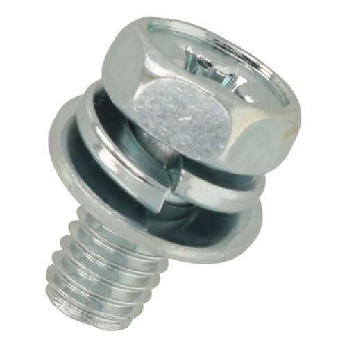 六角アプセットボルトにばね座金と平座金が組込まれており脱落しません。組込み式なので作業効率が向上します。締付け工具はボックスレンチ、メガネレンチ、十字ドライバーが適切です。材質は鋼で耐食性向上のため、 |