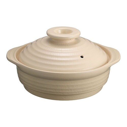 焼成温度を約1,250℃にすることによって、200V電磁調理器はもちろん、100V・ガスコンロ・ハロゲンヒーターなど、さまざまな熱源に対応します。一般の土鍋より施釉面積が広く、吸水率が大幅に低くなりま |