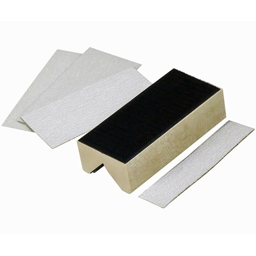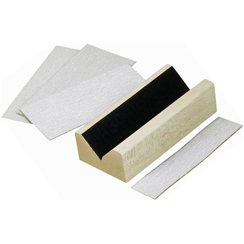 木台のやさしさとマジックテープのクッションで使いやすさ抜群。目づまり防止剤により通常の紙やすりより長持ちします。 |
