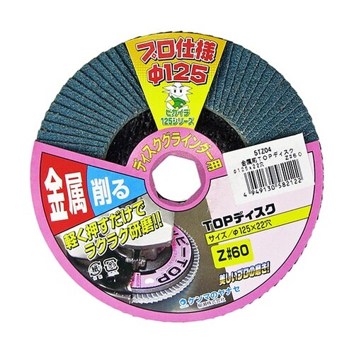 金属研磨の定番品。砥材は研削力の高いジルコニアを使用。重研削に。金属のバリ取り、サビ取りのほか、溶接後のビート取りに。鉄・ステンレス・アルミなど各種金属に。 |