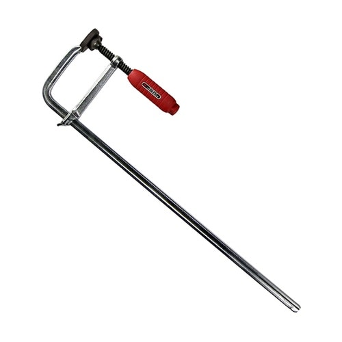 接着作業、溶接作業、機械加工、木工加工での材料固定にバーは鍛造製ですので強力で、反りや曲がりに強く丈夫です。首部は長く仕上げてあるので、通常品(80mm)と比べて深い奥行(120mm)まで締め付けが可