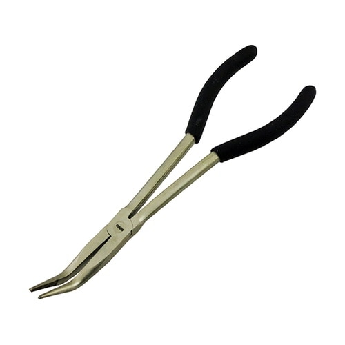 超ロングな先曲りラジオペンチ手の塗布どかないところ、奥まったところ、狭いところでもラクに作業ができる。 |