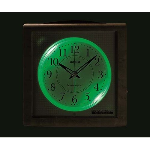 アラームをセットするとライトが点灯し続け、暗所でも時刻が見やすい夜見えライト機能付きの目覚まし電波時計です。ライトは鮮やかな高輝度グリーンLEDを使用したリングライトです。アラームセット時は秒針停止機 |