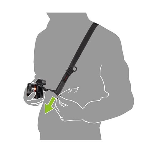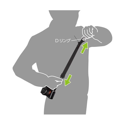 簡単な操作で素早く伸ばしたり縮めたりできるショルダーストラップです。瞬時に伸ばして撮影に移行できるのでシャッターチャンスを逃しません。縮めると身体に密着しカメラ携行時の揺れを抑えます。大きめのコンパク |