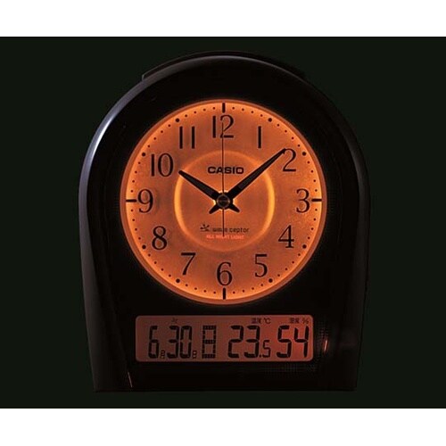 夜見えライト搭載の目覚まし電波時計です。アナログ表示とデジタル表示を兼ね備えたコンビモデルです。日付・曜日・温度・湿度表示付きです。 |