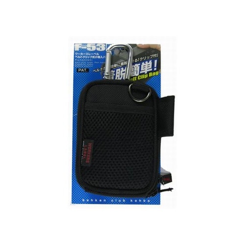 ベルトクリップ式小物入れ手前に小物を入れられるメッシュポケット付6mmカラビナ付 |