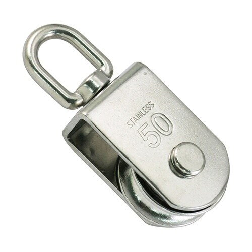 ロープを通して、荷物の吊下げや引っ張る作業に使います。アイの部分が回転するので、ロープのより戻しができます。ステンレス製なので、防錆性・耐候性に優れ丈夫で長持ち。屋外・海岸での使用に最適! |