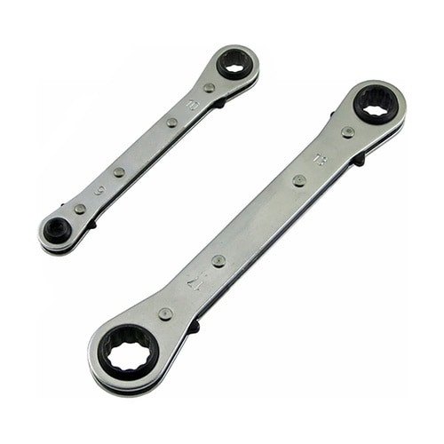 2本のレンチで8サイズのボルト×ナットを回せます。4サイズ板ラチェットレンチ!1本のレンチで4サイズのボルト×ナットを回せる4in1タイプ!狭いところでも楽々使える! |