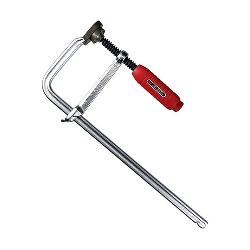 接着作業、溶接作業、機械加工、木工加工での材料固定にバーは鍛造製ですので強力で、反りや曲がりに強く丈夫です。首部は長く仕上げてあるので、通常品(80mm)と比べて深い奥行(120mm)まで締め付けが可 |