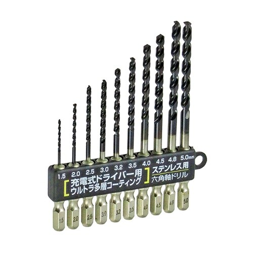 充電式ドライバー・充電式ドリルドライバー・スクリュードライバー対応ステンレス・難削材・一般鋼材・軽金属などの穴あけに強ネジレ形状で軽く、速く穴あけできる特殊ウルトラ多層コーティングにより耐熱性抜群のド |