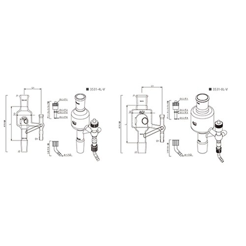 反応容器と冷却器の間に差し込むだけで、分離・凝縮操作を可能にする手動還流器です。 |