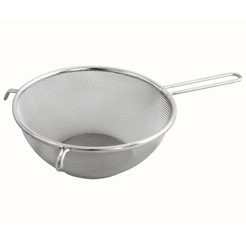 一体成形の足付きで自立し、押しても凹まない丈夫な網を使用。長めのハンドル付きです。 |
