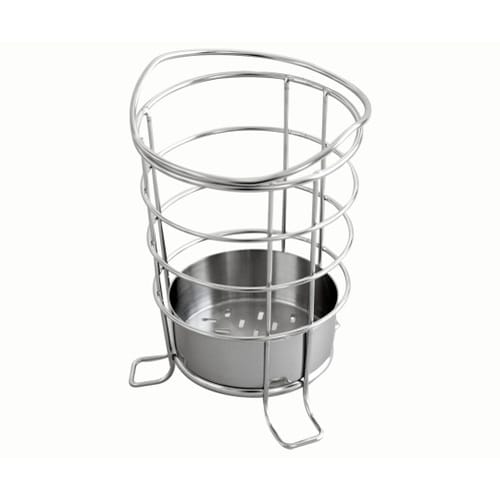 底部に縦長穴付き、また底は外して洗えます。通気性もよくさびにくいです。 |