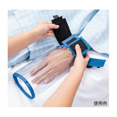 抜管・抜針予防用ミトン先端開放型だから、装着したまま患者さんの手に触れられます。チューブの自己抜去予防や不潔行為の抑制をサポートします。透明だから、患者さんの手の状態を常に観察できます。 |