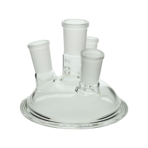 カバー部分とフラスコ部分が分離するガラス製のセパラブルフラスコ用カバーです。化学反応や生物反応など幅広い用途があります。共通すり合わせ規格の接続部には各種センサーの取り付けや試料の添加、ガスの導入排気