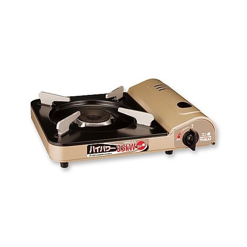 スーパーハイカロリー、3.5Kw(3000kcal/h) 。高級感のある、「ベージュメタリック」ボディ。マグネット式でボンベを楽々着脱。圧力感知安全装置付。ボンベ誤装着防止機能付。火力安定ヒートパネル |