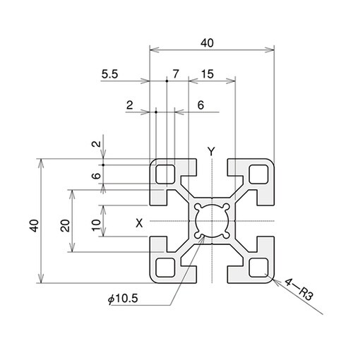 アルミの軽さを維持しながら、独自のフレーム断面で高剛性を実現しました。フレームの溝には専用ナットM3−M5が挿入でき、様々なボルトとの締結が可能です。表面をアルマイト処理(9μm以上)することで腐食を |