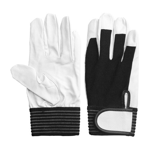 高品質なAグレード豚革を使用しています。甲は吸汗速乾生地を利用し、通気性もよく快適な使い心地。手首のゴムとマジックでぴったりフィットします。 |