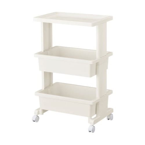 樹脂製の簡易組立式のワゴンです。場所や用途を選ばずさまざまなシーンで使えます。たっぷり入る2つのカゴに天板テーブル付きです。キャスター付きでらくらく移動できます。組立はハメ込むだけで簡単にできます。オ |