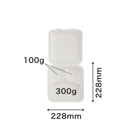 ABバガスランチ230−230−3フードパック 白色 50枚×4パック入