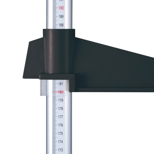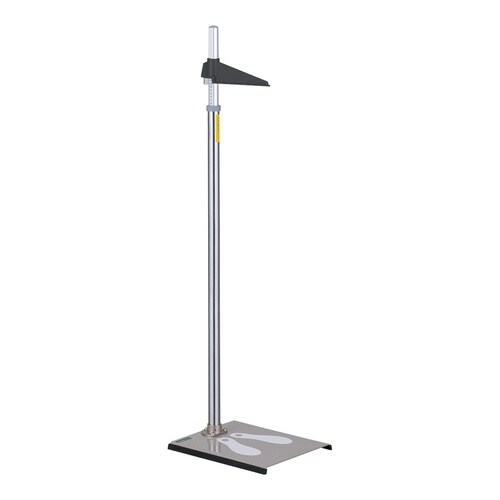左右両面に目盛が付いているので、どちらからでも測定値が読み取れます。台座脚部には非移行性シリコンゴムを採用し、床材への色移りを防止します。伸縮式の主柱で、移動・車内積載に便利です。 |