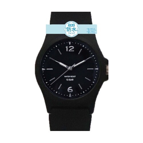 10気圧防水ラバーウォッチ 文字盤 ブラック