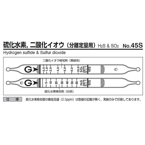 ガス検知管 硫化水素、二酸化イオウ 45