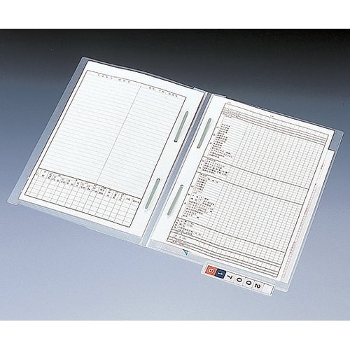 伝票やカルテの一時保管用、ネームカード用のポケット、IDカード用スリット付きです。分類に便利な見出し用ポケット付きです。 |