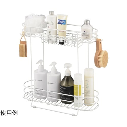 錆びにくいダブルコーティングワイヤー。上段に小物、下段にボトルをまとめて収納。便利なフック2個付。 |