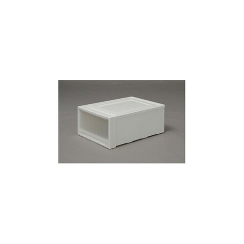 クローゼットでの使用に適したロングチェスト(奥行き約53cm)です。引出しには開閉がスムーズな金属レールを使用しています。引出しは中身が見えるクリアタイプです。 |