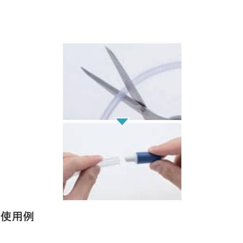 様々なライフスタイルに合わせて使用可能な装着式集尿器です。チューブ長の調整が可能▼インレットチューブをカットすることで好みの長さに調整できます。▼カットしたら別添コネクターをしっかり奥まで差し込みます |