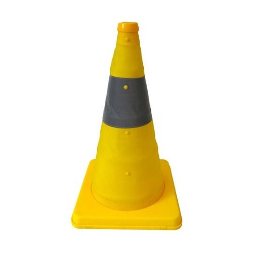 伸縮ができて持ち運びが簡単な三角コーンです。工事現場や迷惑駐車対策に。 |