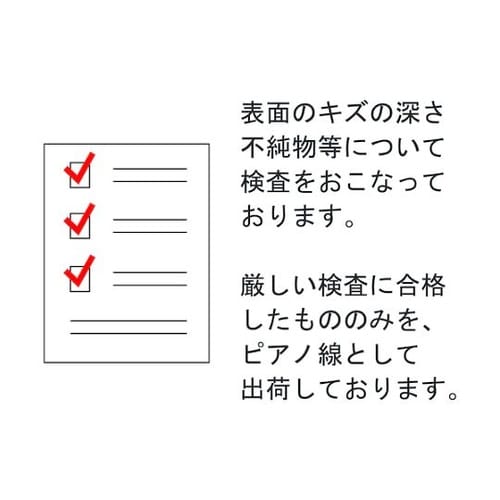 精密機器などに使用されるバネ材です。JISG3522、SWRS82Aで82カーボン、ピアノ線A種です。表面のキズの深さや不純物等について、厳しく規格化され検査されます。自動車産業で多く使用されています |