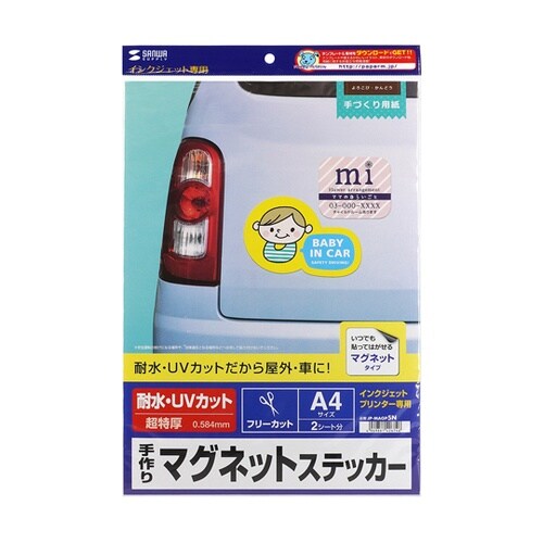 屋外やクルマにも貼れる、特厚の強力マグネットステッカーが手作りできるキットです。印刷したあと、シールとマグネットシートを貼りあわせるので、インクジェットプリンターを選ばず便利です。またマグネットはシー |
