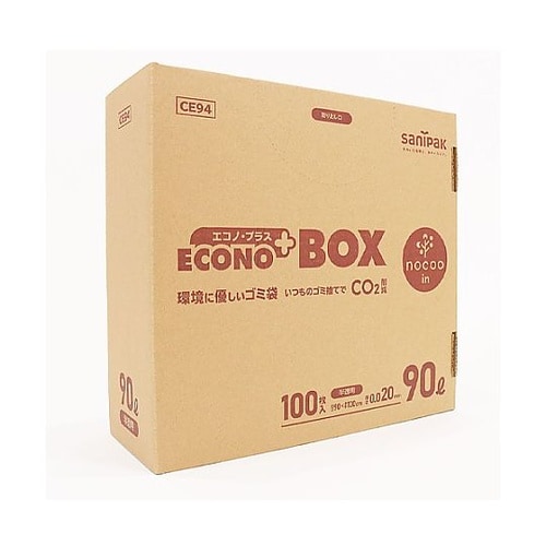 マチ無製造、焼却時のCO2削減(20%超削減)に貢献する環境配慮型製品です。天然ライムストーン配合しており、中身が見えにくい半透明です。場所をとらず、狭い場所にもきれいにストック出来るBOXタイプです