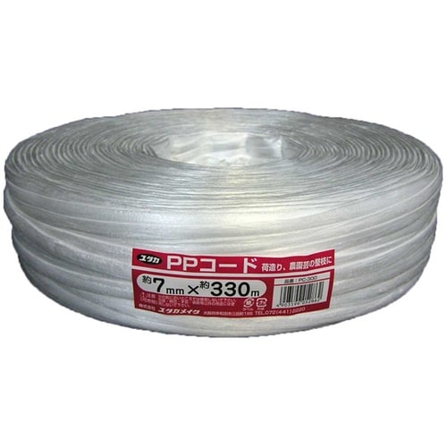 ポリプロピレン製のコード状の荷造り・結束紐。数本のテープを熱で溶着して1本にしたもので強力UP。巻取り形状が、長尺の平巻きタイプ。 |